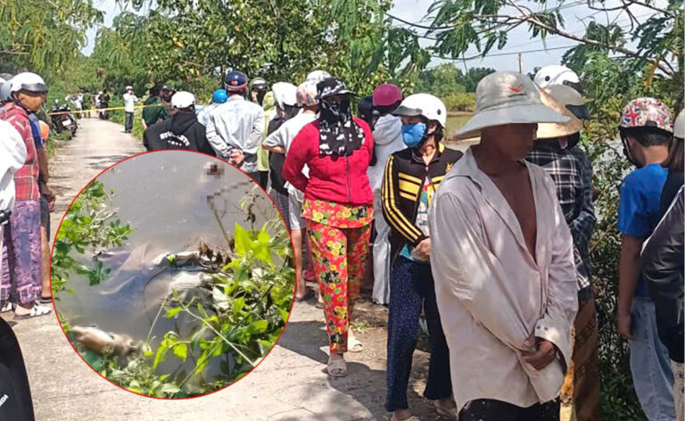 Khoảng 7h, người đàn ông chạy xe trên tuyến đường bêtông dọc kênh Lô 1, thuộc ấp 8, phát hiện thi thể nạn nhân nổi lên mặt nước, cổ có vết thương. Thiếu nữ mặc áo thun màu xám trắng, bên ngoài có áo khoác xám tro.