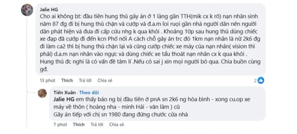 Rất mong người dân quan tâm, chia sẻ để sớm hỗ trợ lực lượng chức năng xử lý vụ việc.