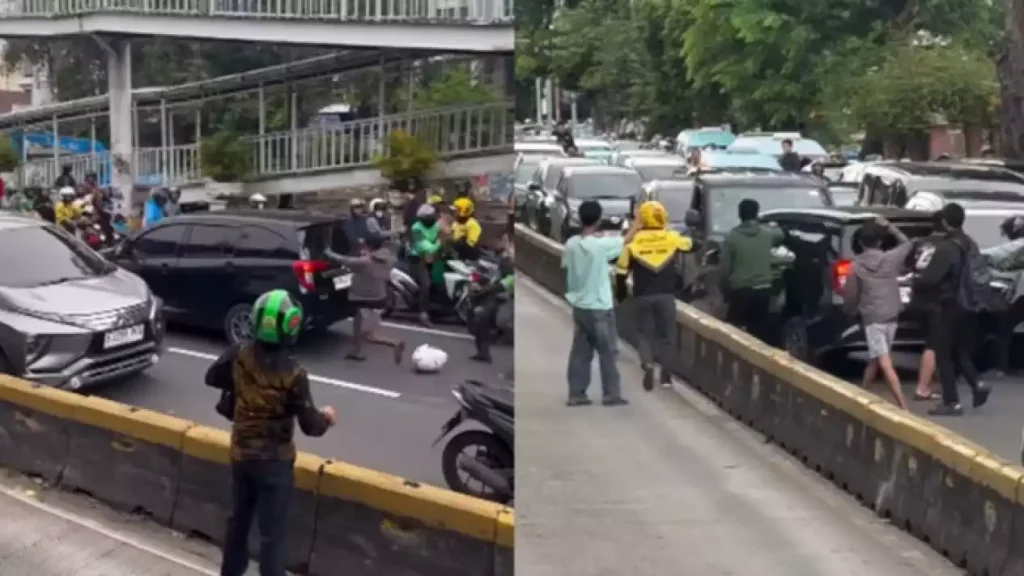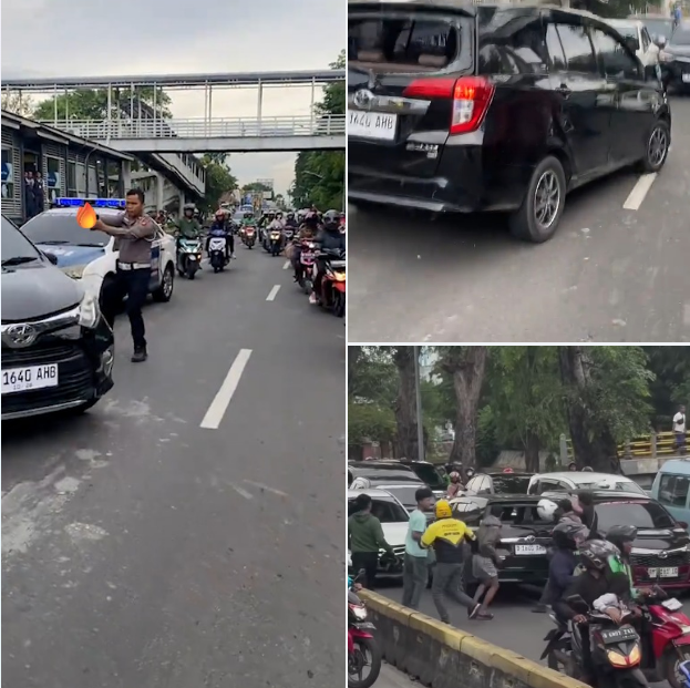 Một sự việc căng thẳng đã xảy ra, một chiếc xe Toyota Calya màu đen suýt bị đám đông tấn công vì đi ngược chiều giữa lúc tắc đường trên đường Gunung Sahari, Sawah Besar, Trung Jakarta.