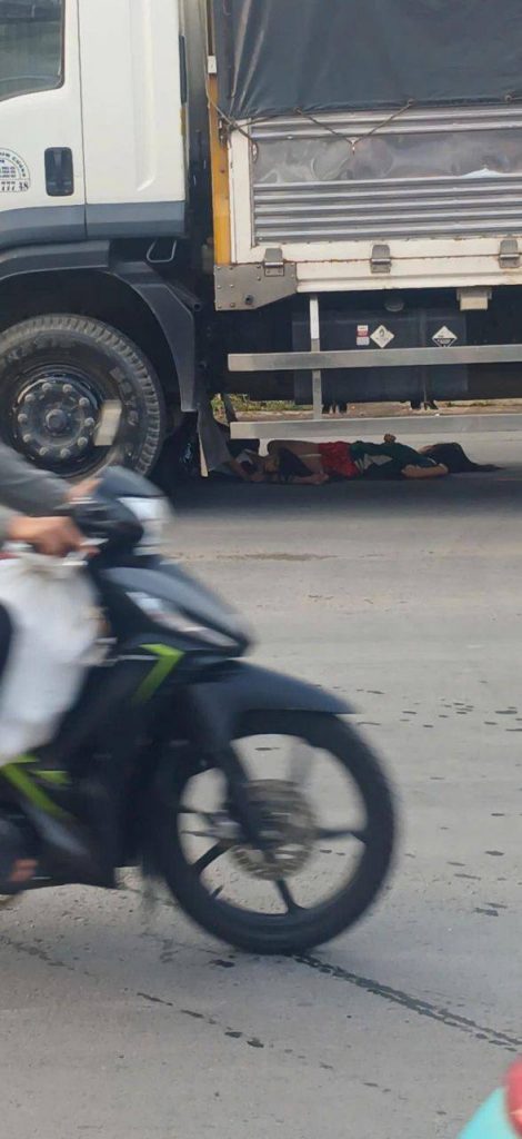 Vừa dừng đèn đỏ xong, chuyển xanh 2 bạn chạy lên tạt đầu xe tải lại còn ngay điểm mù, thế là xảy ra sự việc đáng tiếc như trên, mũ bảo hiểm văng ra, bị cán nát luôn. 2 bạn được đưa đi bệnh viện nhưng mà kh qua khỏi, đã mất trên đường 😢