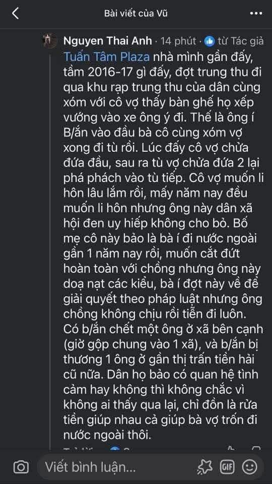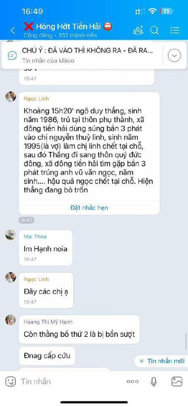 Chồng mới đi tù về. Chắc điều tra đk vợ ngoại tình nên bem vk từ sáng. Xong chiều nay thịt luôn 2 đồng chí nữa. Ở Đông Xuyên Tiền Hải.