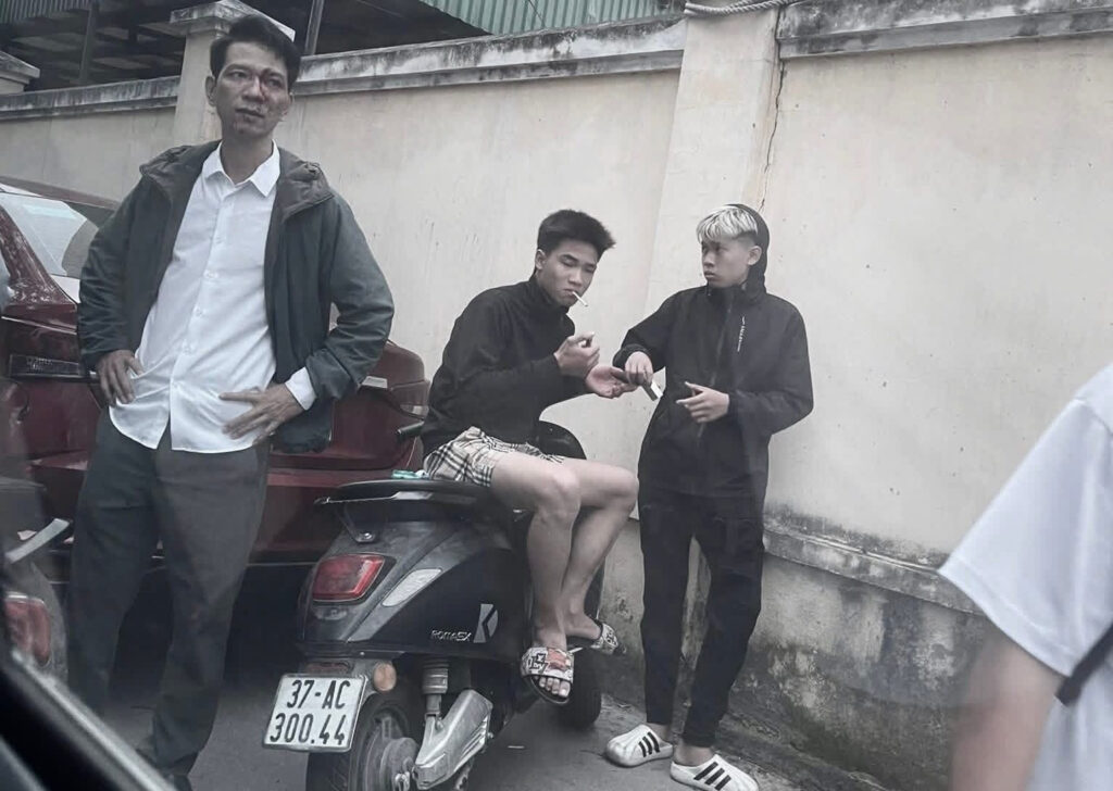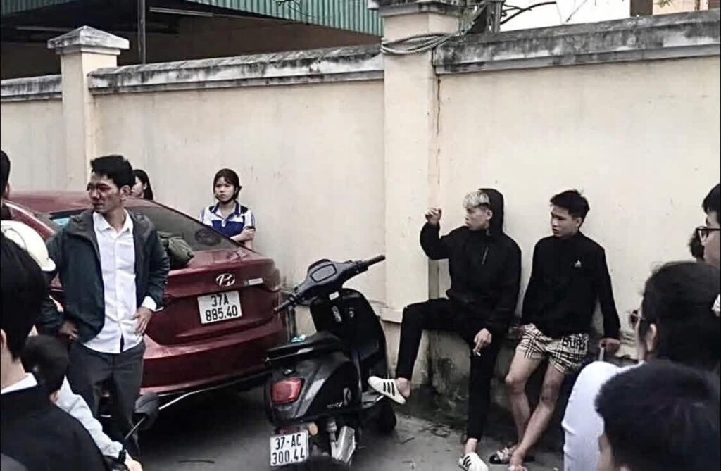 Chiều nay tại trường THCS Lê Mao, Thành Phố Vinh – Nghệ An. Theo cô bán nước ở cổng trường chia sẻ thì thanh niên tóc vàng trong ảnh đang hút thuốc có tán một bạn nữ học tại trường. Sau khi biết chuyện bố của em này đã đến trường đón em về và ngăn cản tình yêu. Với lý do em ấy cần phải học chứ không thể tập trung yêu đương. Thanh niên tóc vàng sau đó khẳng định cháu sẽ lo được cho em, còn chú ngăn cản đừng trách cháu. Thấy thanh niên này có vẻ húng, ông chú bảo tao thách mày làm gì tao luôn, vừa dứt lời thì con rể tương lai bừa luôn nhạc phụ. Ông chú lúc này bực lắm nhưng nhờ người dân quanh đó gọi công an xuống, còn thanh niên cũng không chạy, ở lại sẵn sàng lên đồn luôn. Khổ cô con gái ra nhìn thấy bố lại hỏi “bố bị thằng nào đánh thế?”, anh người yêu đứng thì bảo vừa ông cản anh yêu em nên anh mới múa mấy đường, ai ngờ ông già em yếu. Cô gái nhìn cả 2 không biết bênh ai luôn
