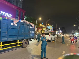 Công an phường Phú Thuận phối hợp lực lượng CSGT đến hiện trường phong tỏa, điều tra nguyên nhân.