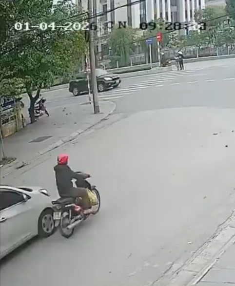 Va chạm giữa ô tô và xe máy, chưa biết ai đúng ai sai thế nào, nhưng người đàn ông xuống xe đã động tay, chân rồi